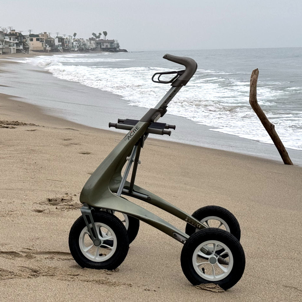 This is actually my second byAcre rollator. I ordered the Overland first, so I could use it effectively on uneven surfaces and trails, rather than be left alone while the rest of my family enjoys nature walks. I then decided that I needed the Ultralight to make it easier to take on flights. I don’t want to rely on airline staff to wheel me to my gate, because they’ve left me stranded a few times. Let’s Roll Mobility is a great company. Both orders were shipped within 24 hours and packaged with the utmost care. They also have wonderful customer service, responding to my questions on the same day.