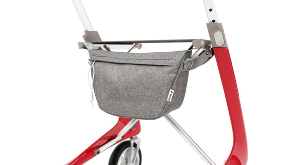 The Ultralight comes with an organizer bag to hold belongings and can be attached to the walker, or used separately. When the Ultralight is folded and stored, the bag does not need to be removed.